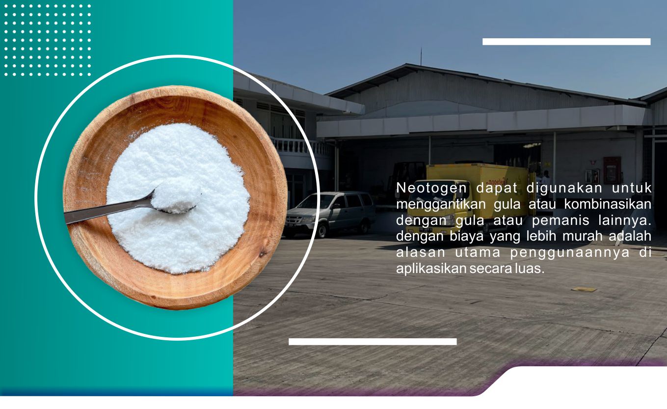 Dengan terus menerus dipantau – kualitas yang baik kami telah mendistribusikan Sodium Siklamat, bermerek Neotogen, ke seluruh provinsi di Indonesia dan juga ke luar negeri ke beberapa negara di dunia.